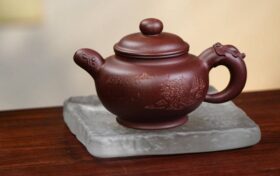 《龙韵掇只》壶,由国家级高级工艺美术师陈老师以优质紫泥全手工制作,容量340cc。壶体浑圆饱满,短流灵动,祥龙…