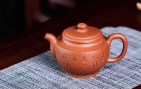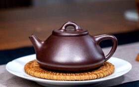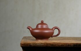 此款子冶石瓢壶由国家级高级工艺美术师周老师采用家藏石红料手工制成。泥料炼制难、成型要求高,且收缩率极大,成品尤…